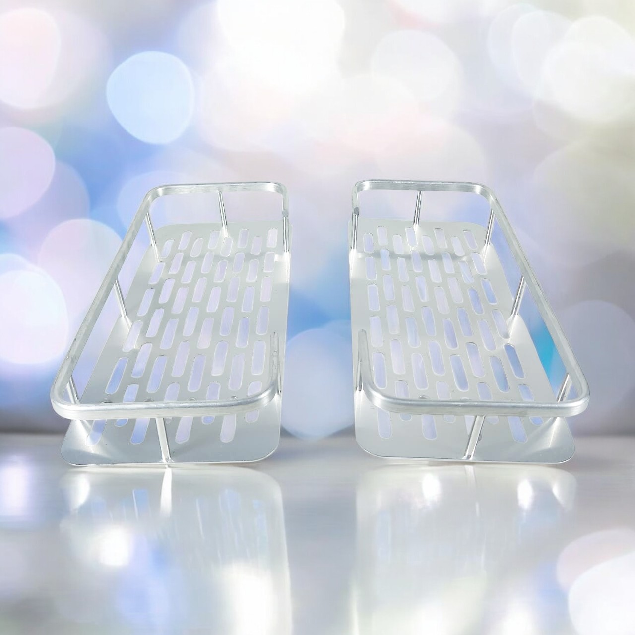 🔹 Mengusung konsep modern elegan, dua buah rak kamar mandi ini membuat kamar mandi semakin cantik dan fungsional.