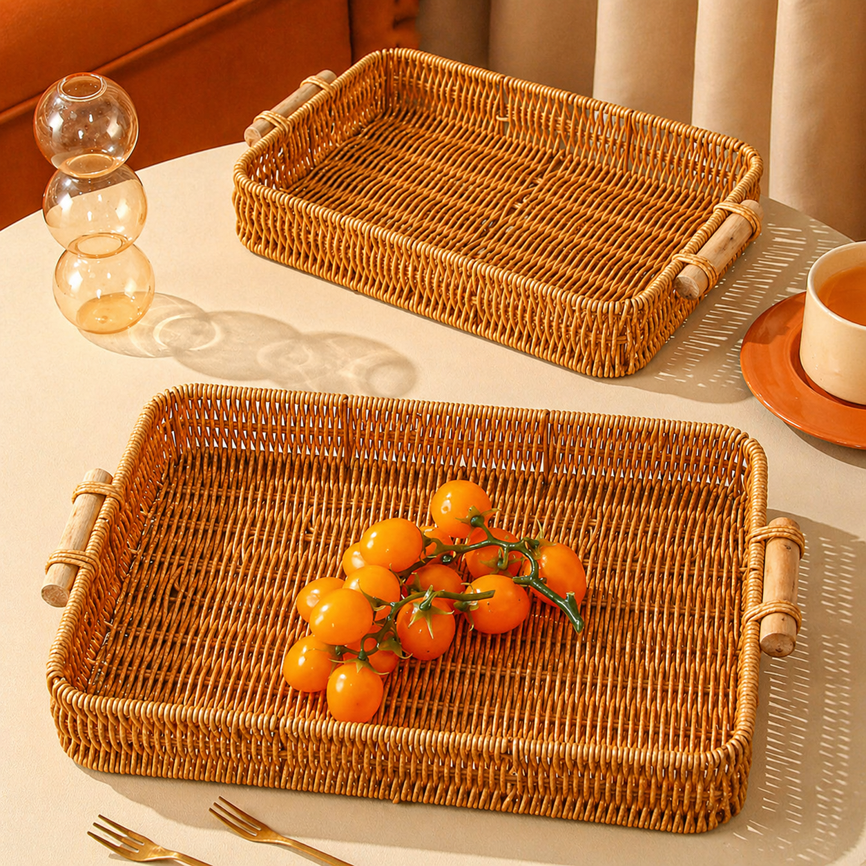 | Tatakan Buah dan Roti Tatakan rotan ini bisa digunakan untuk menghidangkan buah, roti dan makanan ringan lainnya. Hadir dengan desain ergonomis membuat tatakan ini mudah untuk digunakan. Terdapat handle yang memudahkan Anda membawa tatakan ini saat menyajikan makanan. |