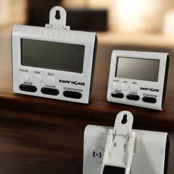 | Fitur Stand dan Magnet Pada bagian belakang alarm masak ini memiliki stand yang membuat alarm bisa diatur berdiri di atas meja sehingga Anda dapat melihat LCD display dengan jelas sambil memasak. Terdapat juga magnet pada bagian stand sehingga dapat ditempel pada permukaan metal dan juga pintu kulkas. |