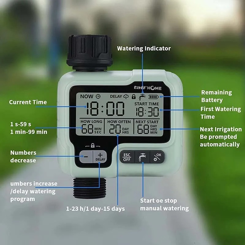 Jika Anda memiliki taman yang luas dan tidak memiliki banyak waktu untuk menyiram tanaman, gunakan saja timer penyiram tanaman otomatis dari TaffHOME. Timer ini berfungsi untuk menyiram tanaman Anda secara otomatis sesuai dengan waktu yang sudah Anda tentukan. Anda bisa menentukan jam mulai, durasi, dan penyiraman selanjutnya. Memiliki tombol dan layar intuitif sehingga mudah untuk dioperasikan.