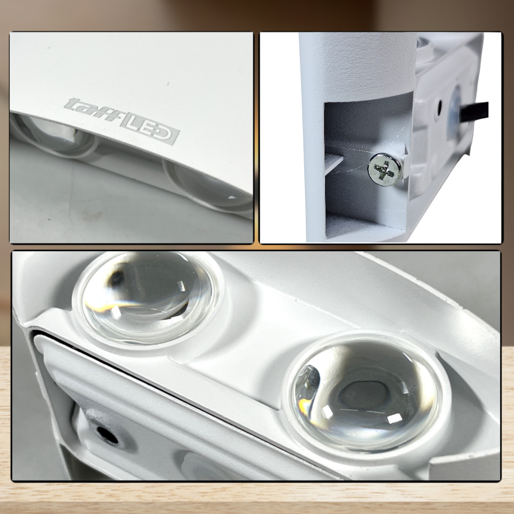 Jangan biarkan dinding rumah Anda terasa sepi dan membosankan, segera pasang lampu dinding hias outdoor dari TaffLED yang memiliki desain modern. Dirancang dengan 4 LED yang mampu menyorotkan cahaya dari dua sisi, lampu ini merupakan solusi penerangan sekaligus dekorasi yang indah untuk dinding kamar, area pintu masuk, atau teras.