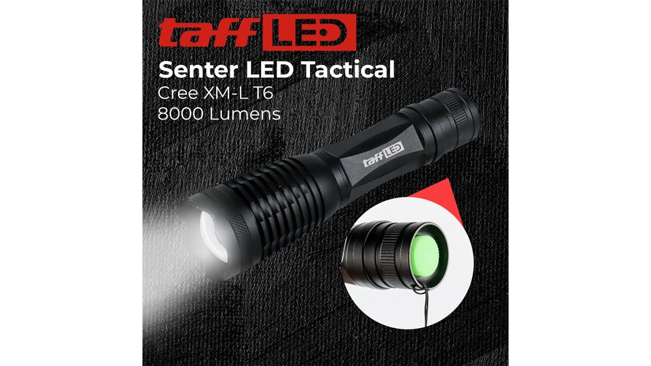 | Cahaya Terang dengan LED CREE XM-L T6 Ditenagai oleh LED CREE XM-L T6 yang kuat, TaffLED senter LED menghasilkan cahaya yang sangat terang hingga 8000 Lumens dan jangkauan pencahayaan yang luas. Dalam situasi gelap, senter ini akan memberikan cahaya yang memadai untuk menjelajahi lingkungan sekitar Anda dengan jelas. |