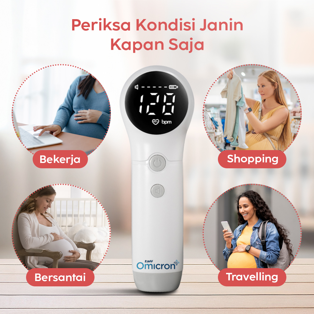 Memeriksa kondisi kandungan semakin mudah dengan menggunakan fetal doppler dari TaffOmicron. Menggunakan gelombang ultrasonik sebagai alat utama, alat ini dapat mendeteksi detak jantung janin. Detak jantung ini akan diubah menjadi suara yang akan dikeluarkan oleh speaker bawaan. Semakin praktis karena fetal doppler hadir dengan ukuran ringkas yang mudah dibawa dan bisa digunakan kapan saja.