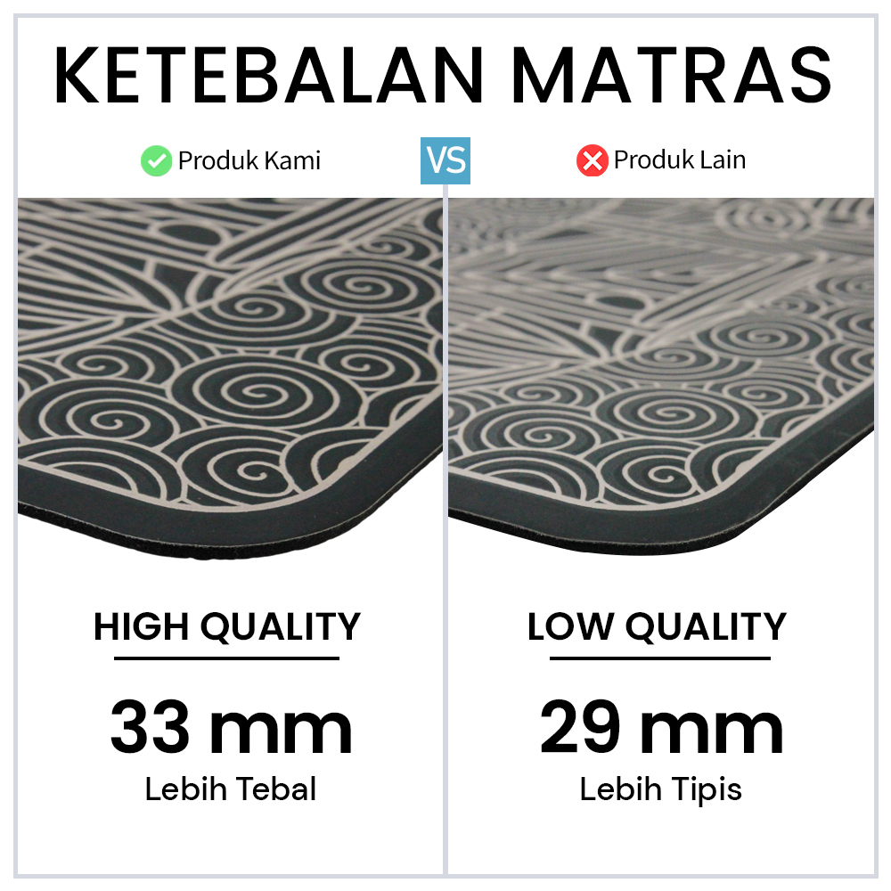 🔹 Matras kualitas premium, lebih tebal, lebih lembut, dan lebih lebar dari brand lain, membuatnya lebih nyaman untuk digunakan.