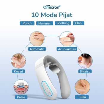 | 10 Mode Pijat Redakan sakit dan pegal pada leher lebih maksimal dengan 10 pilihan mode pijat. Mulai dari pulse yang ringan hingga tuina untuk relaksasi maksimal pilh mode pijat yang paling sesuai kebutuhan. |
