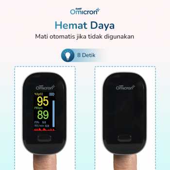| Hemat Daya, Mati Otomatis Tak perlu repot mematikan alat secara manual. Pulse oximeter akan mati secara otomatis setelah 8 detik tidak digunakan yang membuatnya lebih hemat listrik. |