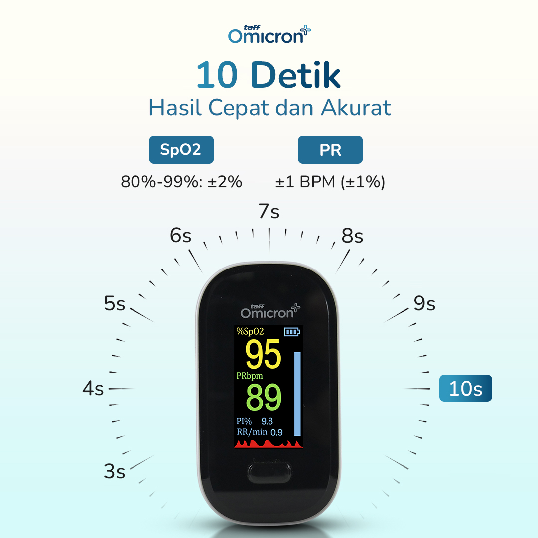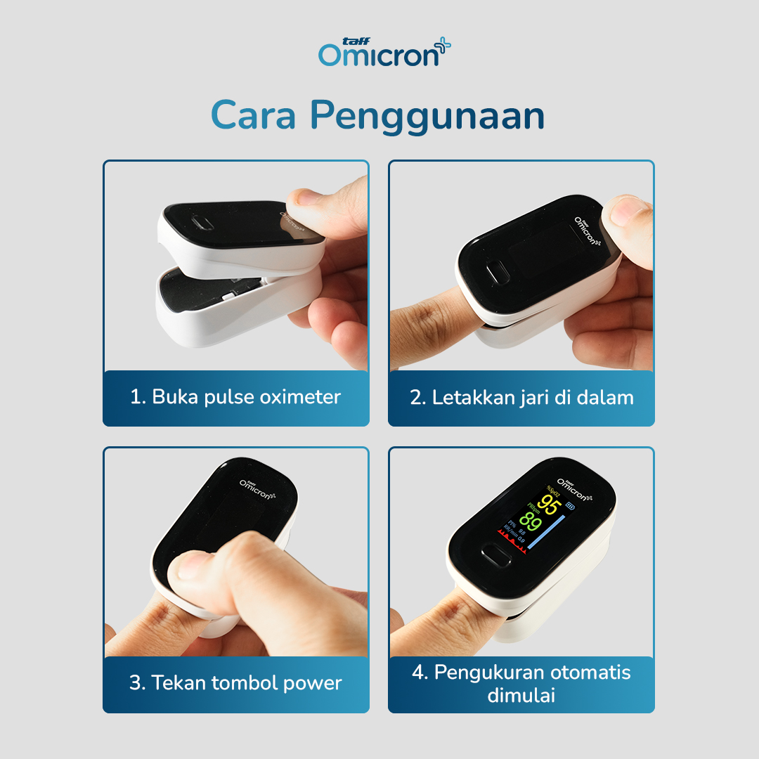Periksa kadar oksigen darah secara rutin menggunakan pulse oximeter TaffOmicron. Menggunakan chip pengukuran digital, alat ini dapat memberikan hasil ukur akurat dalam hitungan detik. Display adjustable memudahkan Anda membaca hasil pengukuran. Semakin praktis karena menggunakan baterai AAA yang tahan lama.