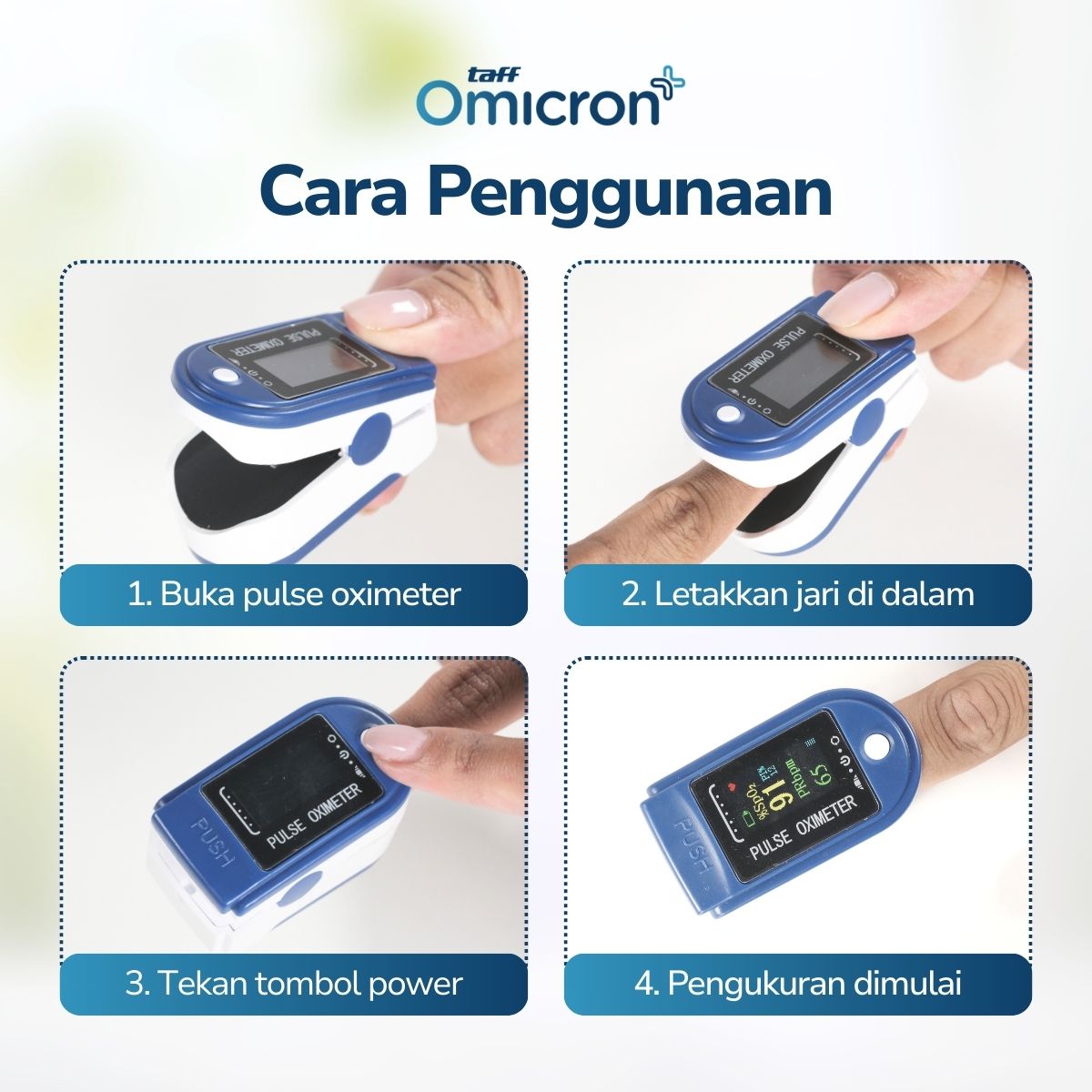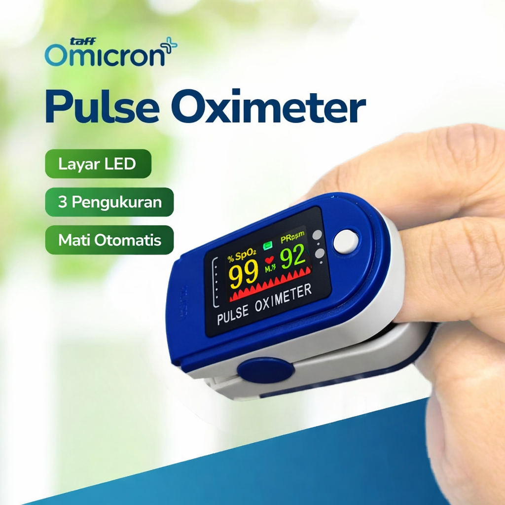 Jadi salah satu indikator kesehatan yang penting, pastikan Anda memeriksa kadar oksigen darah secara rutin menggunakan pulse oximeter TaffOmicron. Menggunakan chip pengukuran digital, alat ini dapat memberikan hasil ukur akurat dalam hitungan detik. Display LED adjustable memudahkan Anda membaca hasil pengukuran. Semakin praktis karena menggunakan baterai AAA yang tahan lama.