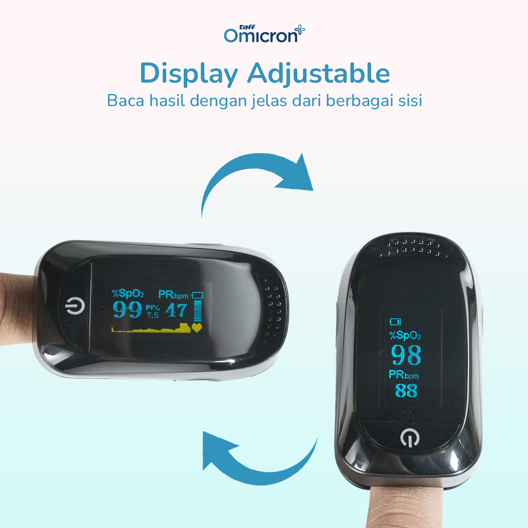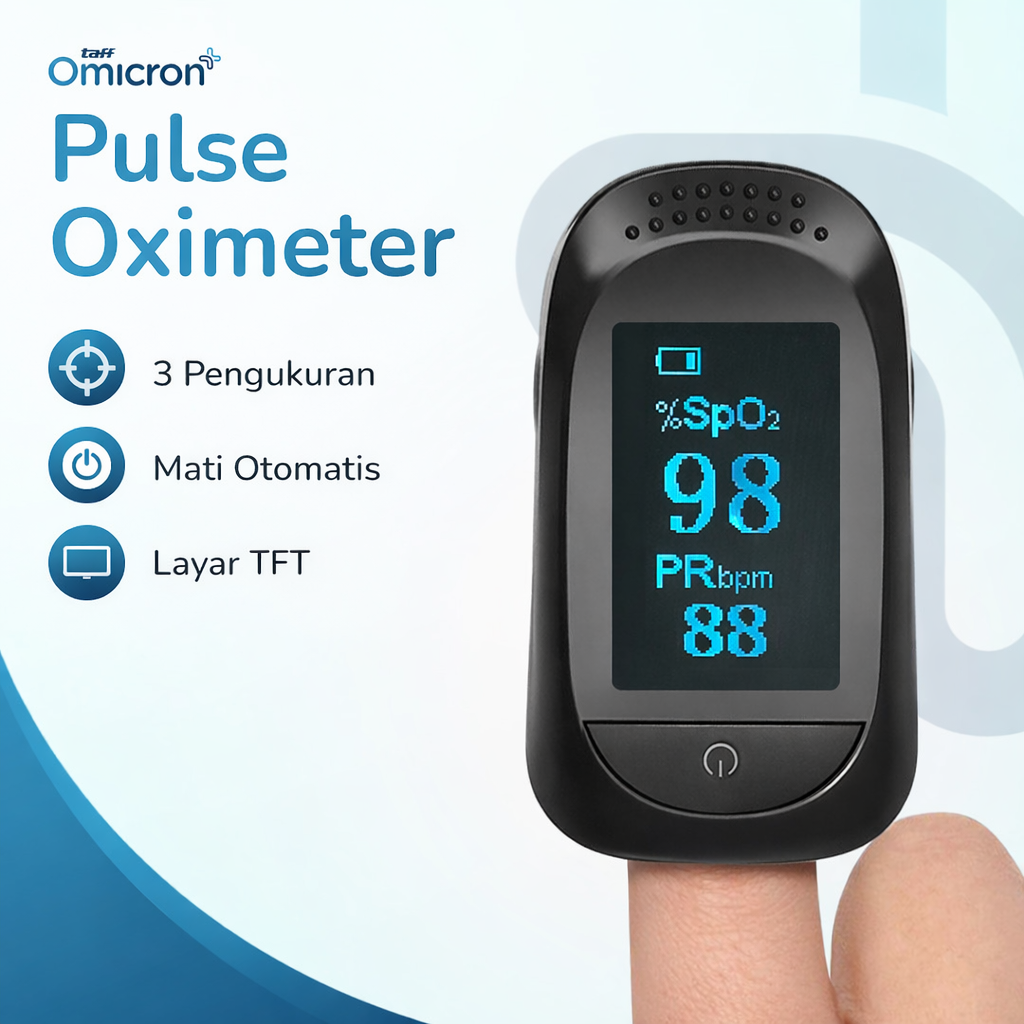 Jadi salah satu indikator kesehatan yang penting, pastikan Anda memeriksa kadar oksigen darah secara rutin menggunakan pulse oximeter TaffOmicron. Menggunakan chip pengukuran digital, alat ini dapat memberikan hasil ukur akurat dalam hitungan detik. Display TFT adjustable memudahkan Anda membaca hasil pengukuran. Semakin praktis karena menggunakan baterai AAA yang tahan lama.