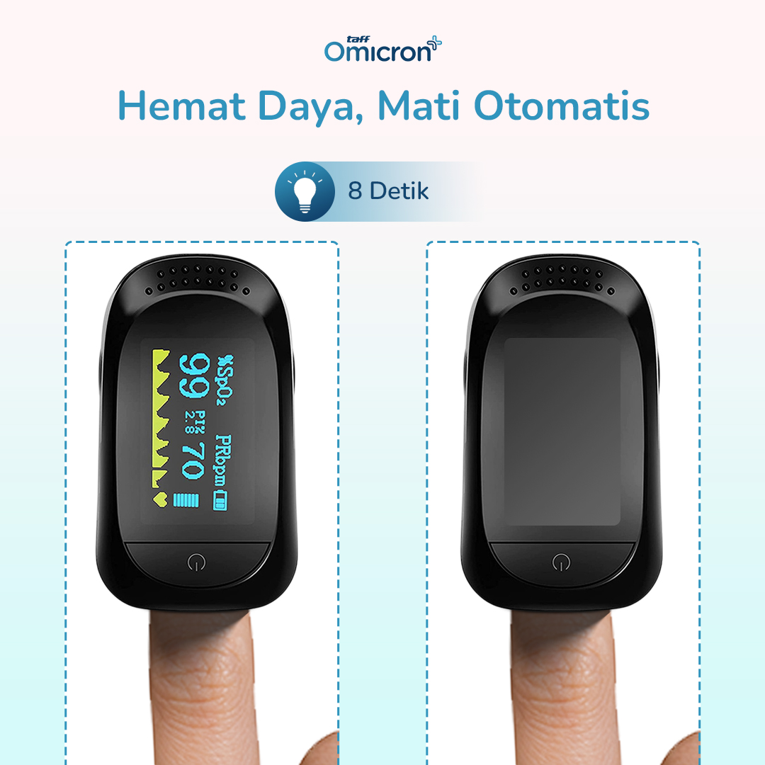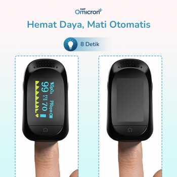 | Hemat Daya, Mati Otomatis Tak perlu repot mematikan alat secara manual. Pulse oximeter akan mati secara otomatis setelah 5 detik tidak digunakan yang membuatnya lebih hemat listrik. |
