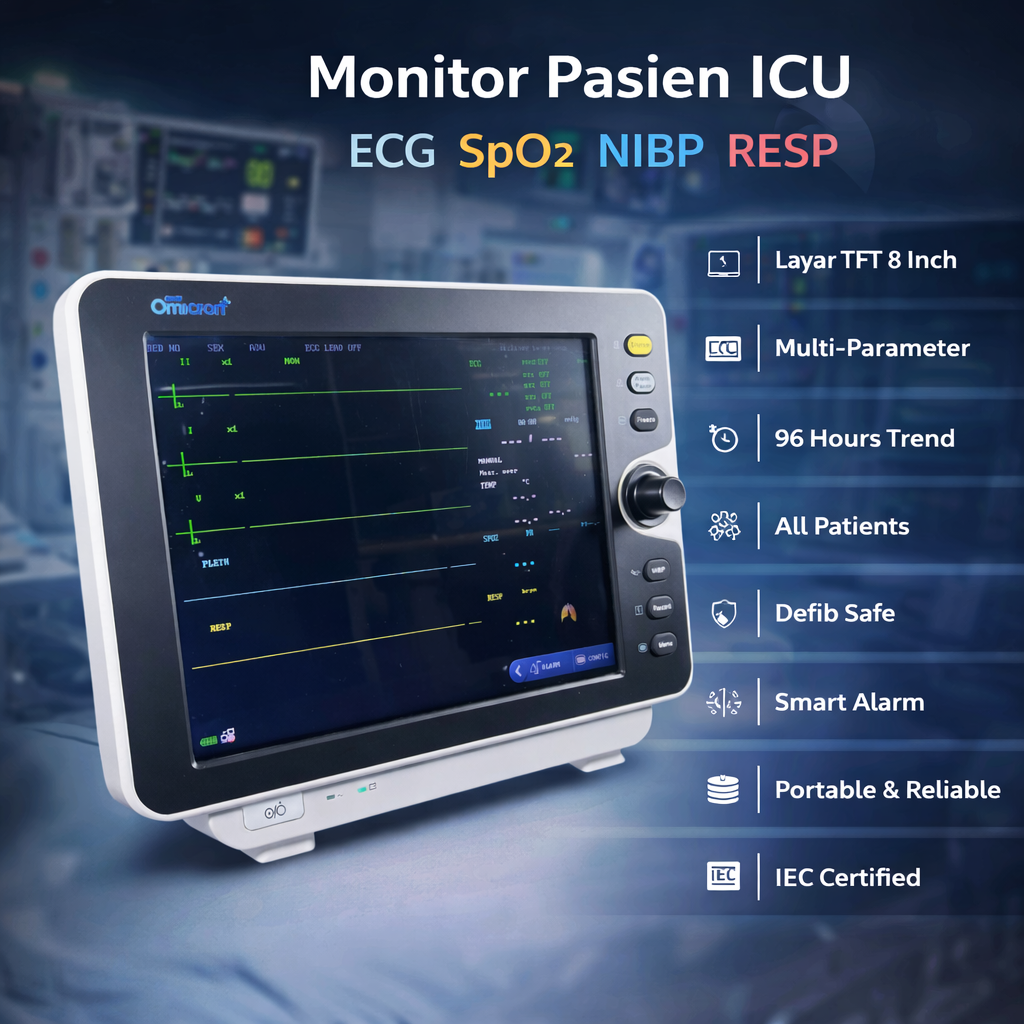Sebagai perangkat monitoring vital sign pasien, TaffOmicron menghadirkan integrasi akurasi, stabilitas sistem, dan fleksibilitas konfigurasi dalam satu unit kompak yang andal. Dilengkapi dengan 10+ parameter vital ICU grade, tampilan multi-waveform, layar digital 12.1 Inch, 3 level alarm, penyimpanan 400 data NIBP, trend graph 96 jam, anti-defibrillation, optional printer output, dan standar IEC 60601. Dilengkapi juga dengan baterai bawaan sehingga proses pemindahan pasien tidak terganggu. Cocok digunakan untuk ICU, NICU, ruang operasi, hemodynamic monitoring, hingga pasien kritis.