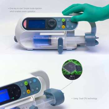 | Deteksi Ukuran Syringe Otomatis Sistem secara otomatis mendeteksi ukuran syringe (10/20/30/50 mL) serta mendukung kalibrasi berbagai merek syringe. Fitur ini memastikan akurasi volumetrik tetap konsisten dan mengurangi risiko mismatch syringe yang dapat mempengaruhi presisi dosis. |