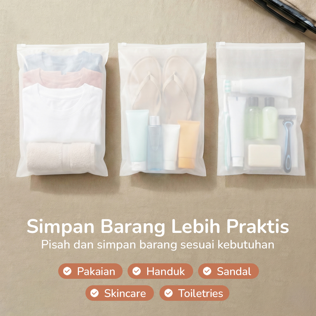 | Simpan Barang Lebih Praktis Menyimpan dan membawa barang selama traveling lebih mudah karena Anda bisa menggunakan zipper bag untuk mengelompokkan barang sesuai kebutuhan. Tak ada lagi barang yang terampur di dalam koper. |