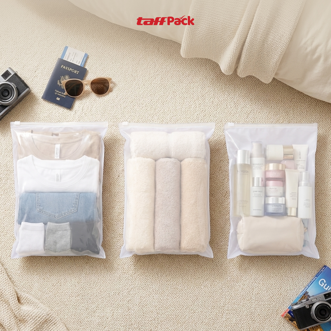 Jika Anda mencari penyimpanan yang ringkas dan tahan air, zipper bag dari TaffPACK adalah pilihan yang tepat. Material plastik PVC membuatnya tahan air dan kuat untuk menampung pakaian hingga alat mandi. Sistem penutup zipper mudah dibuka tutup tanpa khawatir rusak atau terbuka saat disimpan. Tersedia dalam banyak ukuran yang bisa dipilih sesuai kebutuhan.