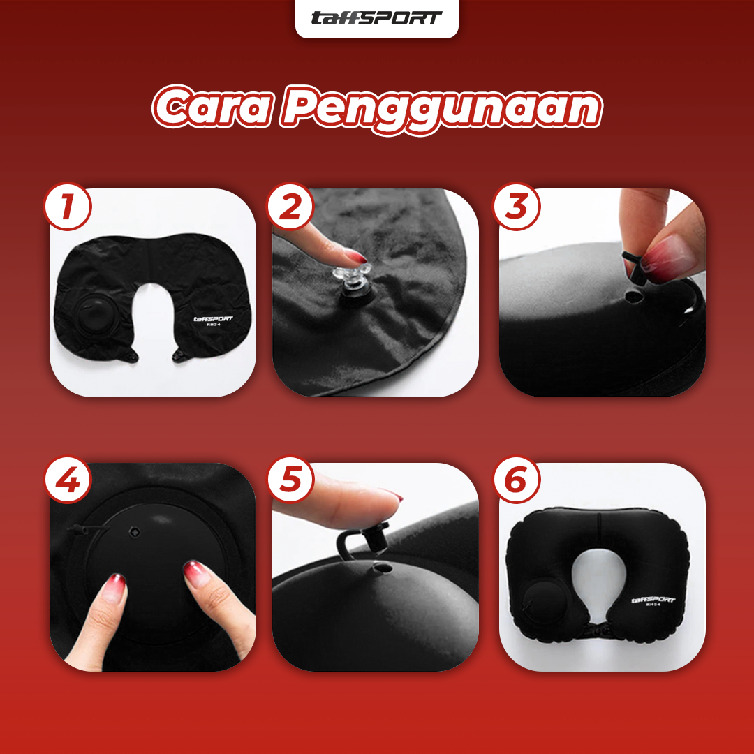 | Penggunaan Anti Ribet Buka bantal yang terlipat, lalu buka penutup pompa. Tekan-tekan beberapa saat hingga penuh. Anda pun bisa menggunakan bantal travel ergonomis untuk tidur dalam waktu singkat. |