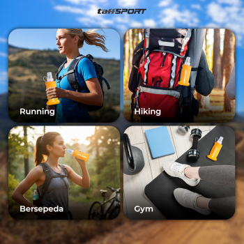 Membawa air minum saat olahraga hingga trekking kini makin mudah berkat botol minum lipat dari TaffSPORT. Terbuat dari TPU yang aman dan tebal, botol ini bisa dilipat saat tidak digunakan. Kapasitas 150 ml ideal untuk redakan haus saat beraktivitas luar ruangan. Tersedia banyak pilihan warna yang bisa disesuaikan dengan outfit olahraga.
