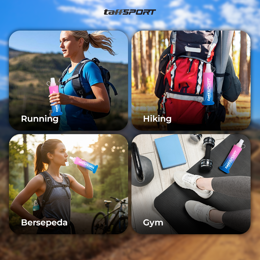 Membawa air minum saat bepergian kini makin mudah berkat botol minum lipat dari TaffSPORT. Terbuat dari TPU yang aman dan tebal, botol ini bisa dilipat saat tidak digunakan. Kapasitasnya ideal untuk temani berbagai aktivitas luar ruangan. Tersedia 2 pilihan ukuran yang bisa dipilih sesuai kebutuhan.