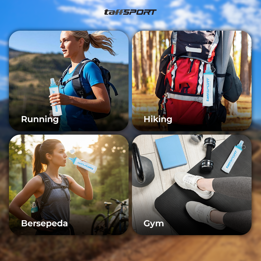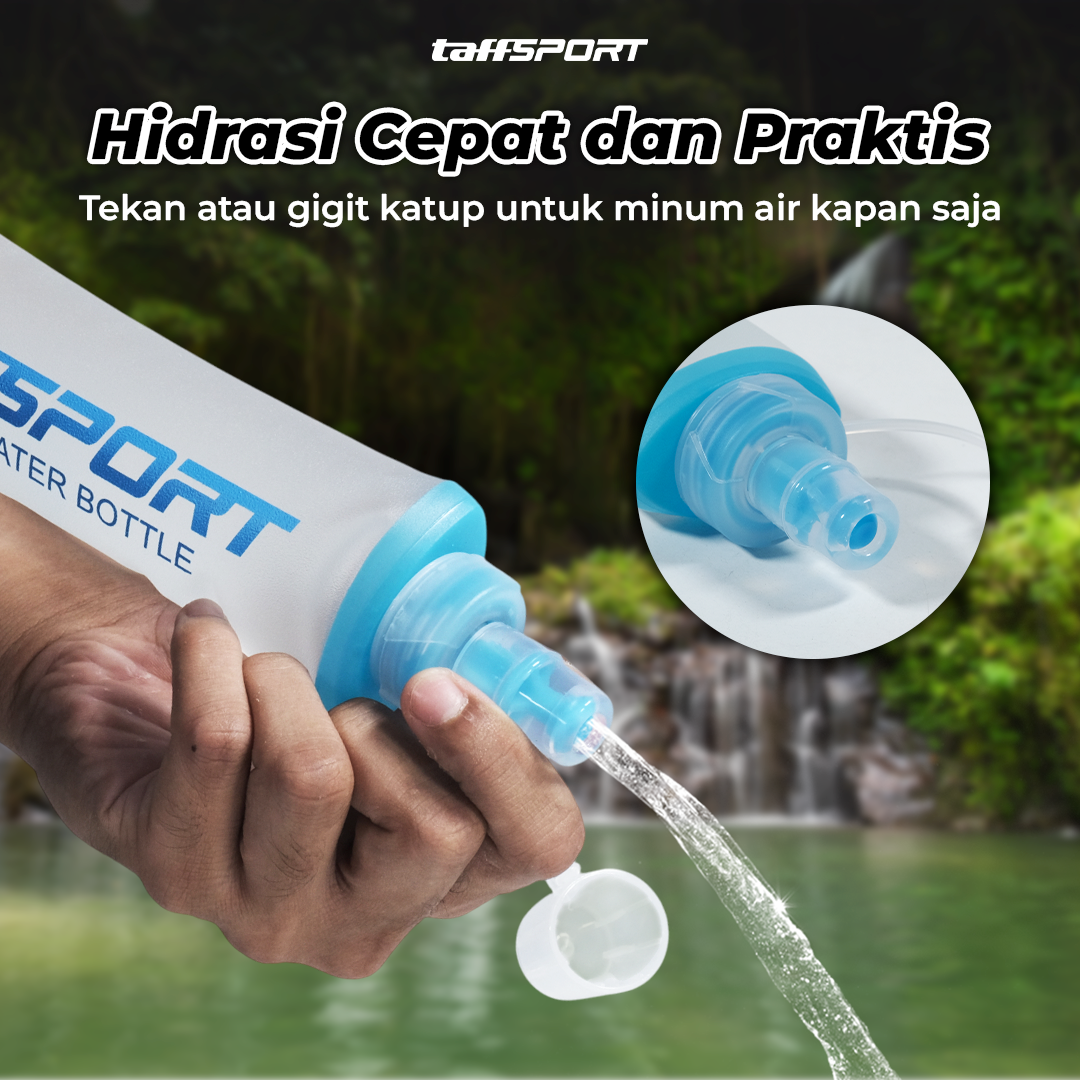 Membawa air minum saat bepergian kini makin mudah berkat botol minum lipat dari TaffSPORT. Terbuat dari TPU yang aman dan tebal, botol ini bisa dilipat saat tidak digunakan. Kapasitasnya ideal untuk temani berbagai aktivitas luar ruangan. Tersedia 2 pilihan ukuran yang bisa dipilih sesuai kebutuhan.