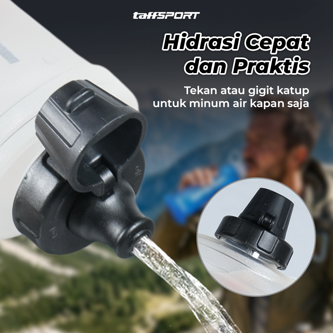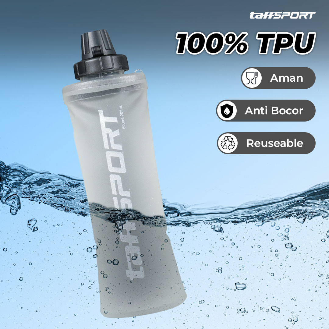 Membawa air minum saat bepergian kini makin mudah berkat botol minum lipat dari TaffSPORT. Terbuat dari TPU yang aman dan tebal, botol ini bisa dilipat saat tidak digunakan. Daya tampungnya pun mencapai 600 ml yang tentunya ideal untuk berbagai aktivitas luar ruangan. Anda bahkan bisa menggantungnya di tas atau sepeda agar lebih hemat tempat dan mudah dibawa. Soft flask ini juga kompatibel untuk filter dengan ukuran 42 mm. Sangat cocok untuk aktivitas olahraga seperti lari, hiking, bersepeda dan lainnya.