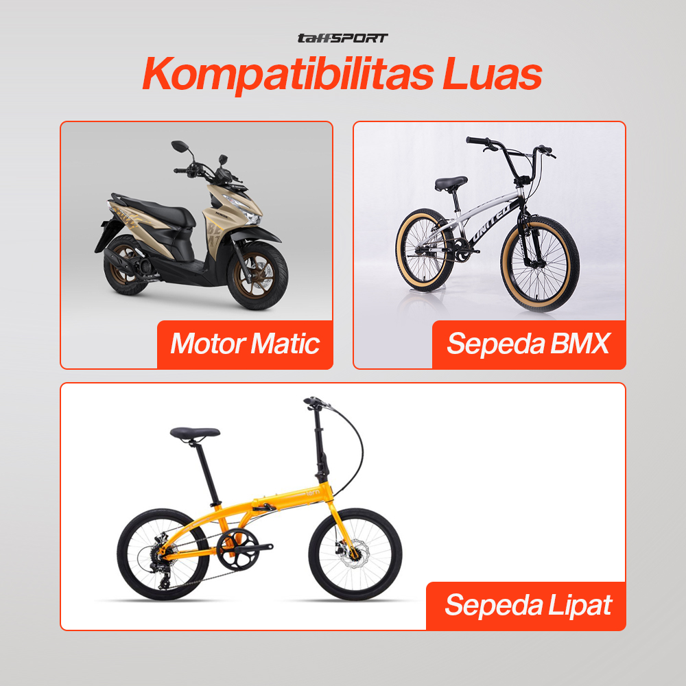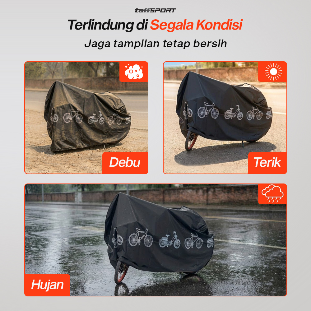 | Model Universal untuk Berbagai Kendaraan Dirancang dengan ukuran dan bentuk universal, cover ini dapat digunakan untuk berbagai motor matic, sepeda BMX, hingga sepeda lipat. Cocok untuk penggunaan di rumah, kos, apartemen, maupun area parkir terbuka. |
