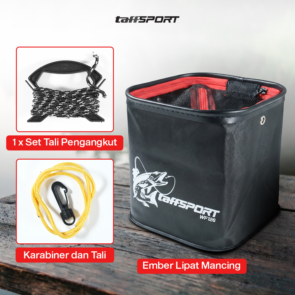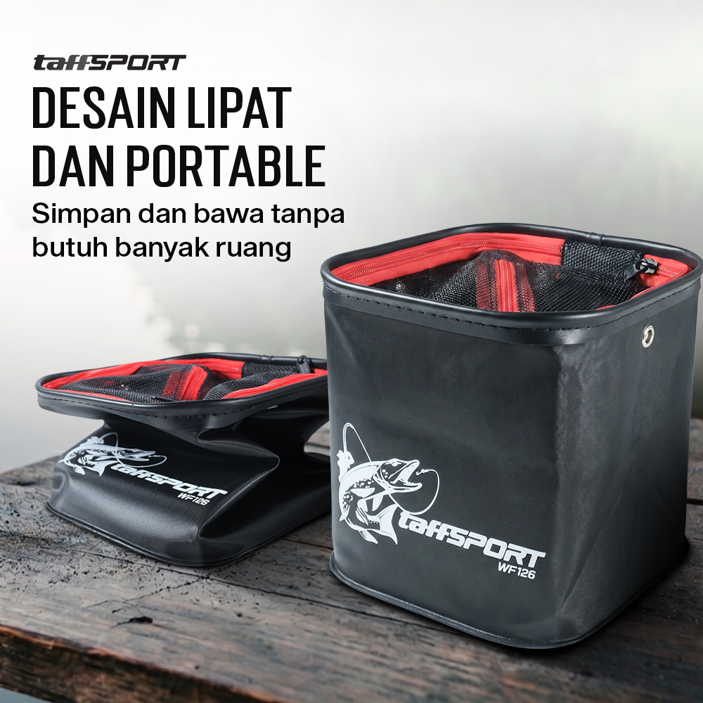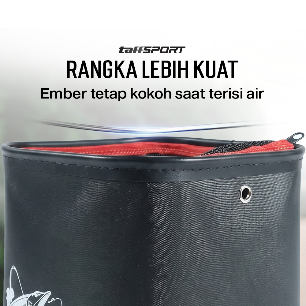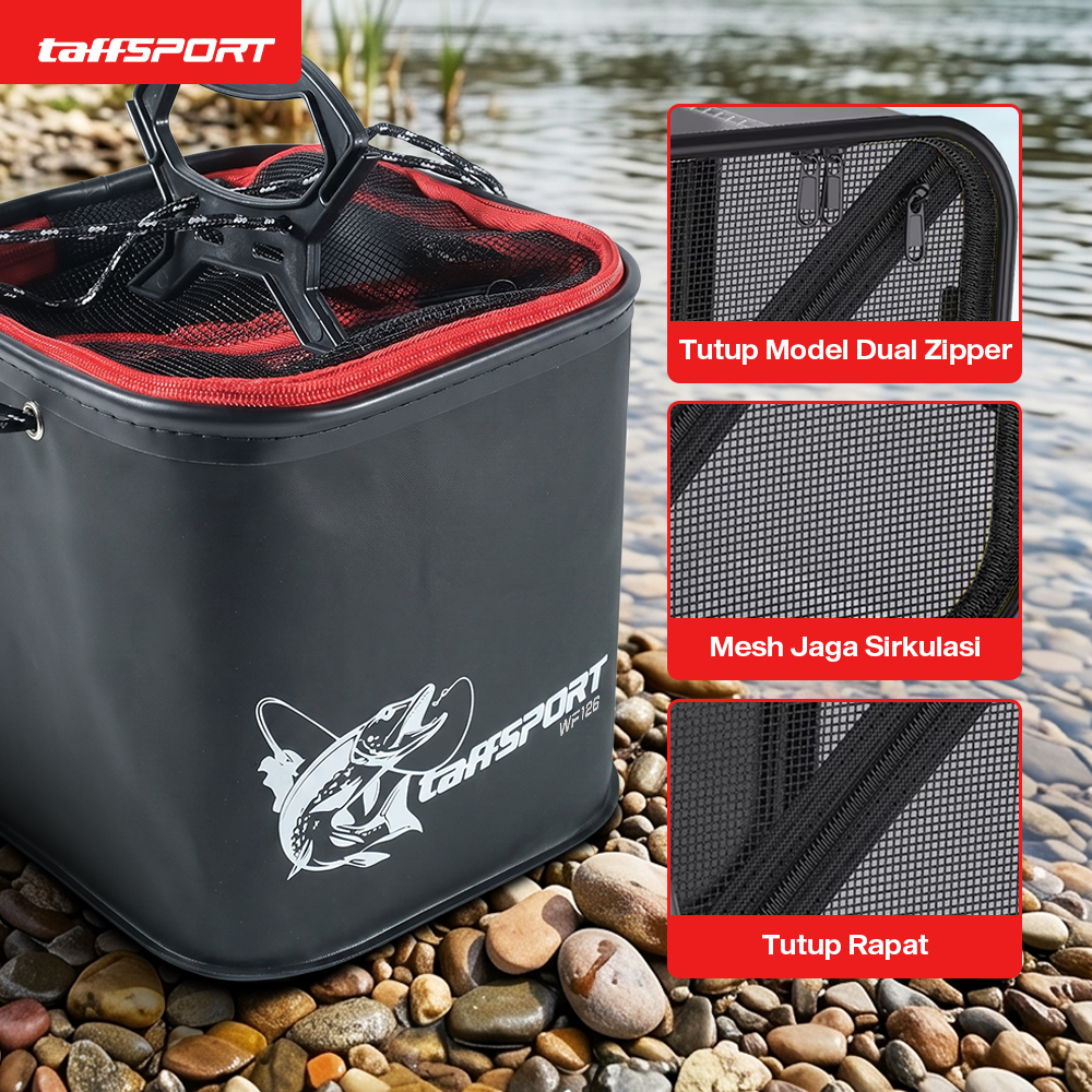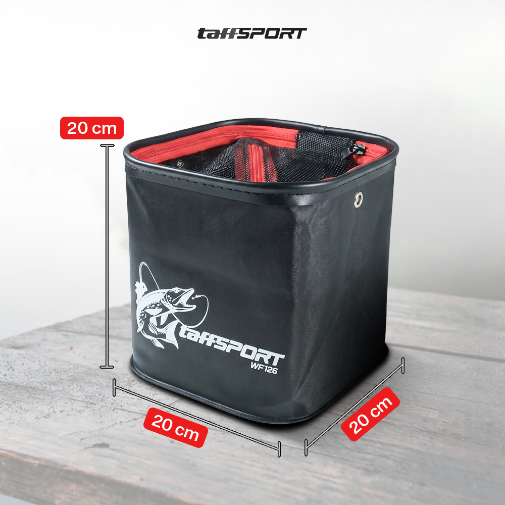 Jika memancing membutuhkan umpan hidup atau ingin menjaga hasil pancing tetap segar, gunakan ember lipat dari TaffSPORT! Terbuat dari bahan EVA tahan air dan dapat dilipat, ember ini praktis dibawa dan disimpan. Hadir dengan tutup mesh untuk menjaga sirkulasi udara.