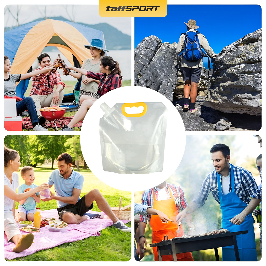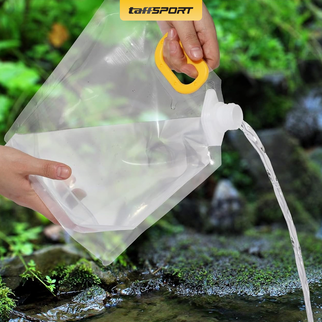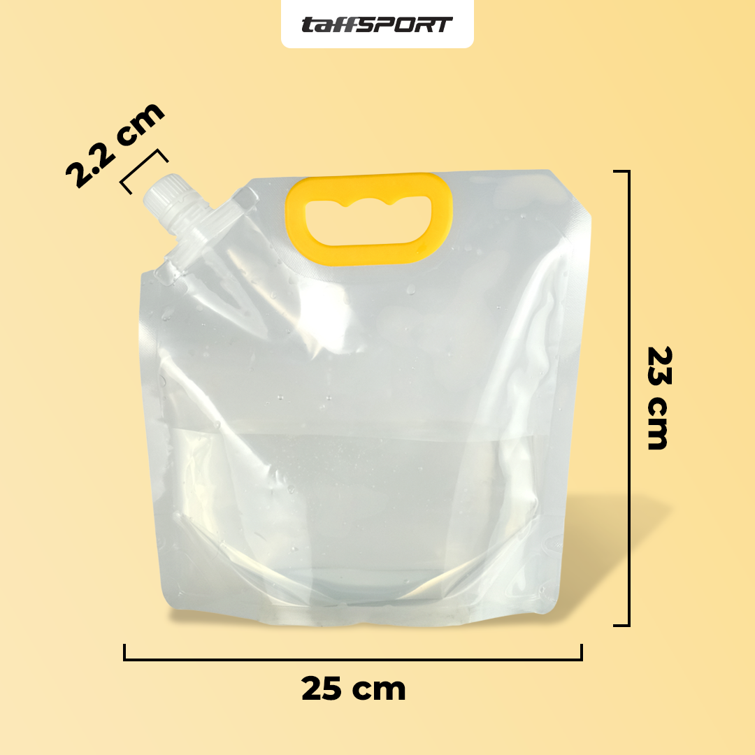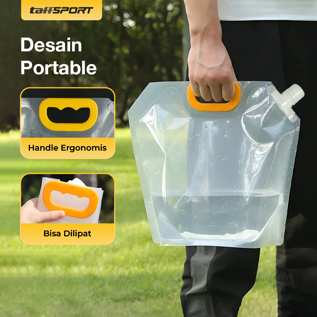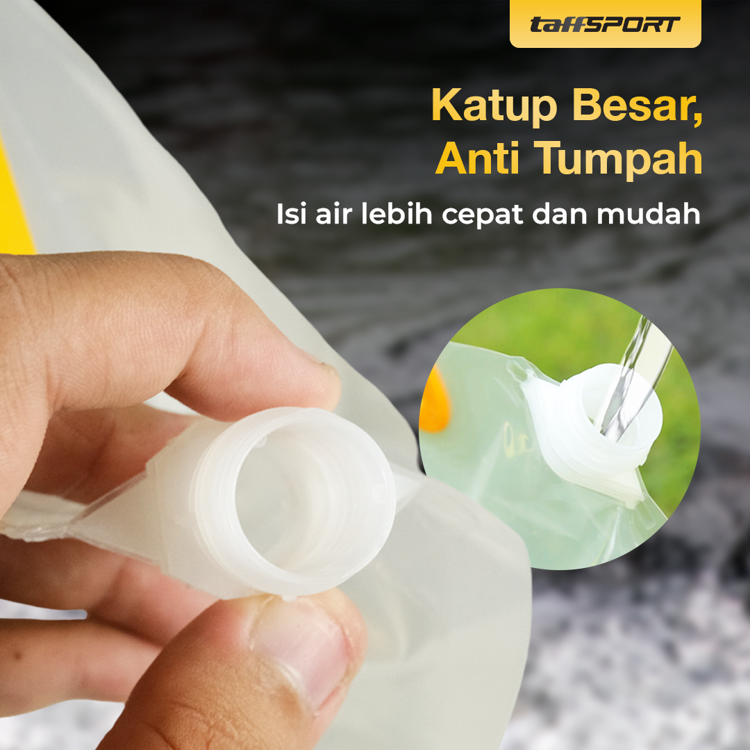 Penuhi kebutuhan air bersih selama camping atau hiking di alam terbuka menggunakan kantong air portable dari TaffSPORT. Terbuat dari bahan plastik PE, kantong ini anti bocor dan aman digunakan untuk membawa air bersih. 4 Pilihan kapasitas yang ditawarkan cukup untuk memenuhi berbagai kebutuhan, mulai dari minum hingga memasak.