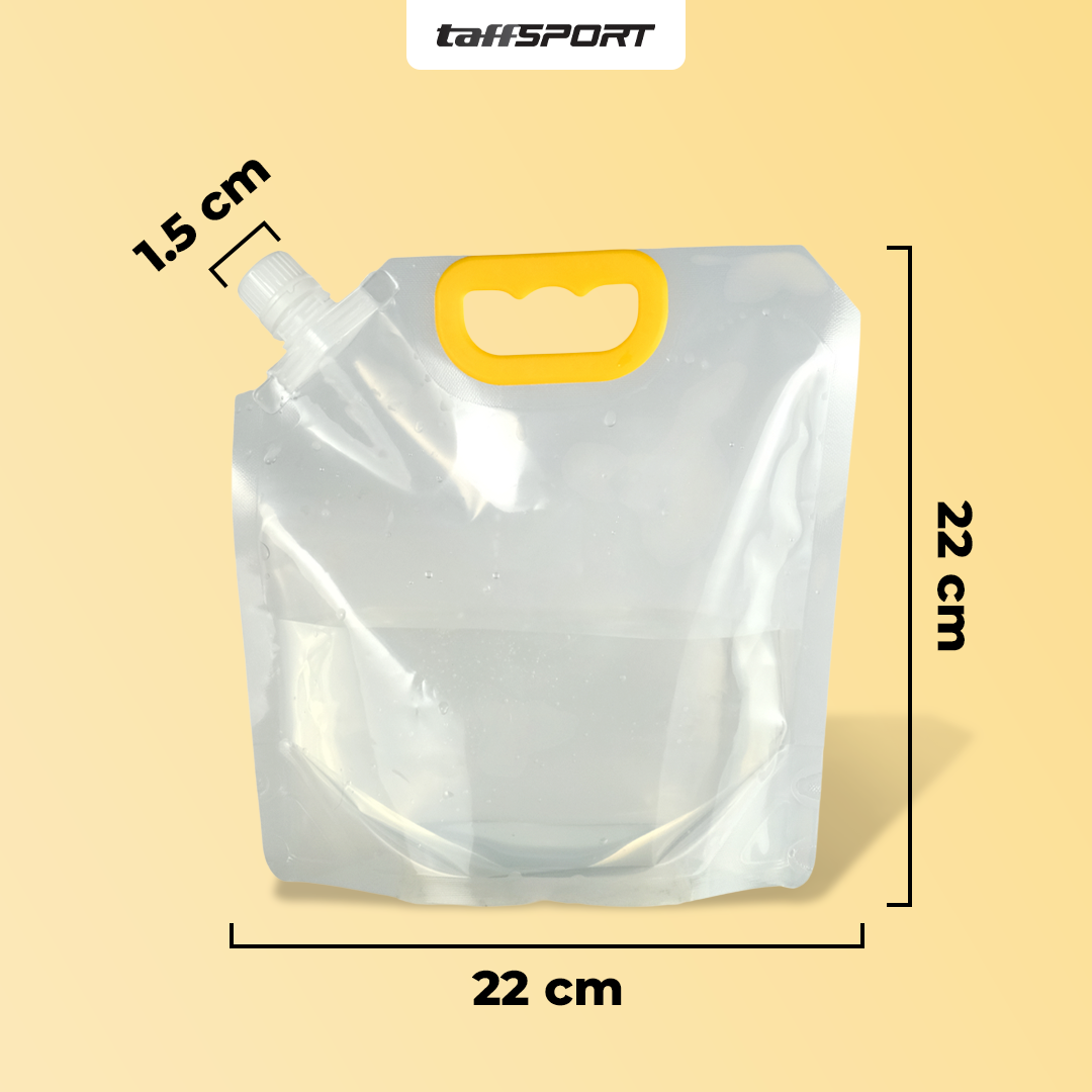 Penuhi kebutuhan air bersih selama camping atau hiking di alam terbuka menggunakan kantong air portable dari TaffSPORT. Terbuat dari bahan plastik PE, kantong ini anti bocor dan aman digunakan untuk membawa air bersih. 4 Pilihan kapasitas yang ditawarkan cukup untuk memenuhi berbagai kebutuhan, mulai dari minum hingga memasak.