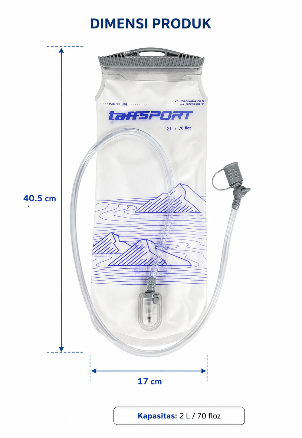 Saat bersepeda, trail running, atau hiking, berhenti hanya untuk minum sering mengganggu ritme aktivitas Anda. Kini tetap fokus bergerak dengan water bladder 2 L dari TaffSPORT yang dilengkapi selang dan bite valve praktis. Anda bisa minum kapan saja tanpa perlu membuka tas atau menghentikan langkah. Solusi ideal untuk pecinta olahraga dan aktivitas outdoor.