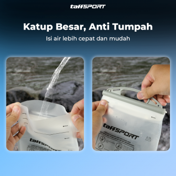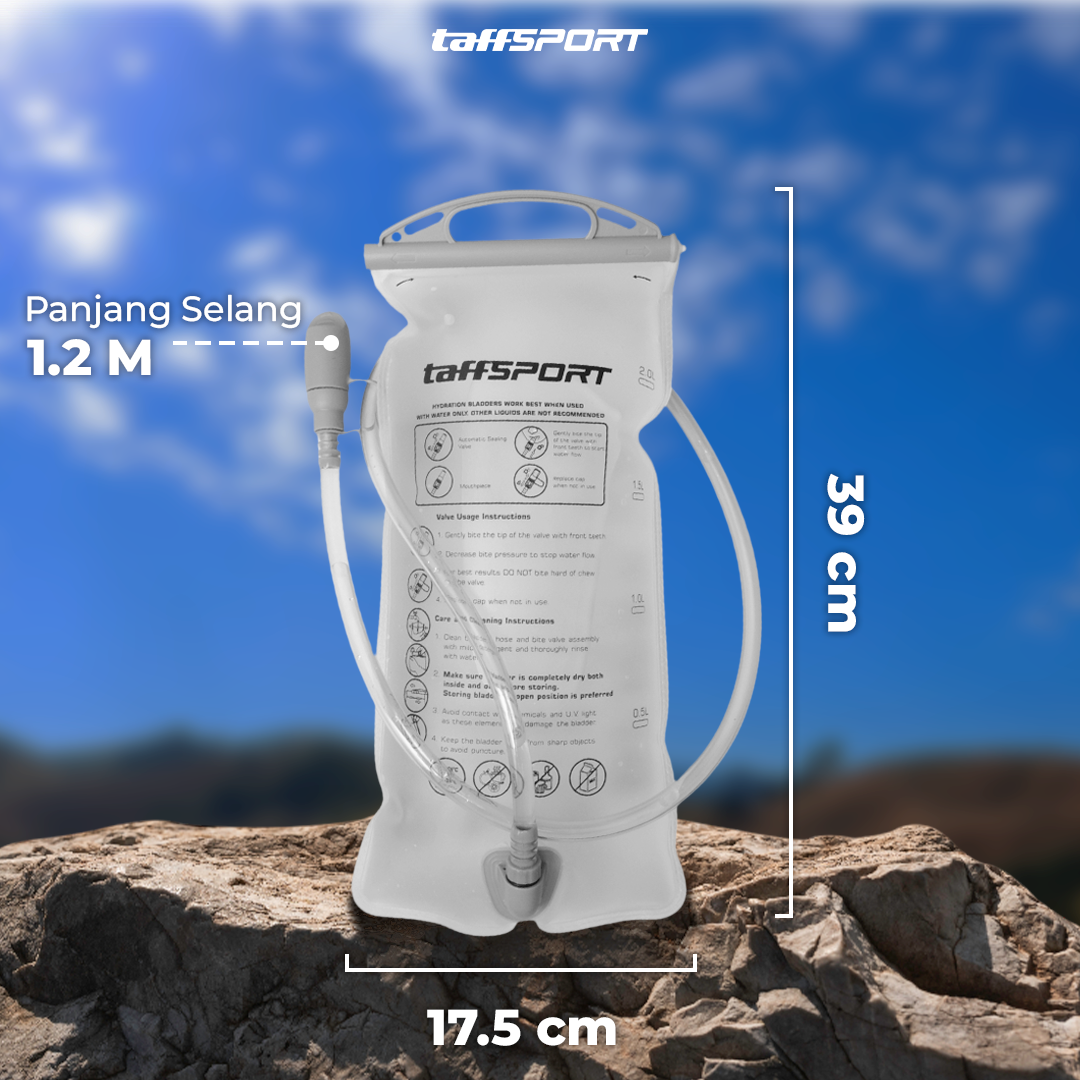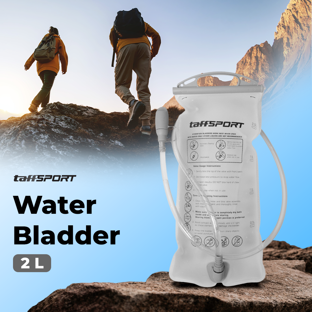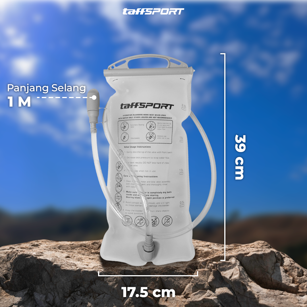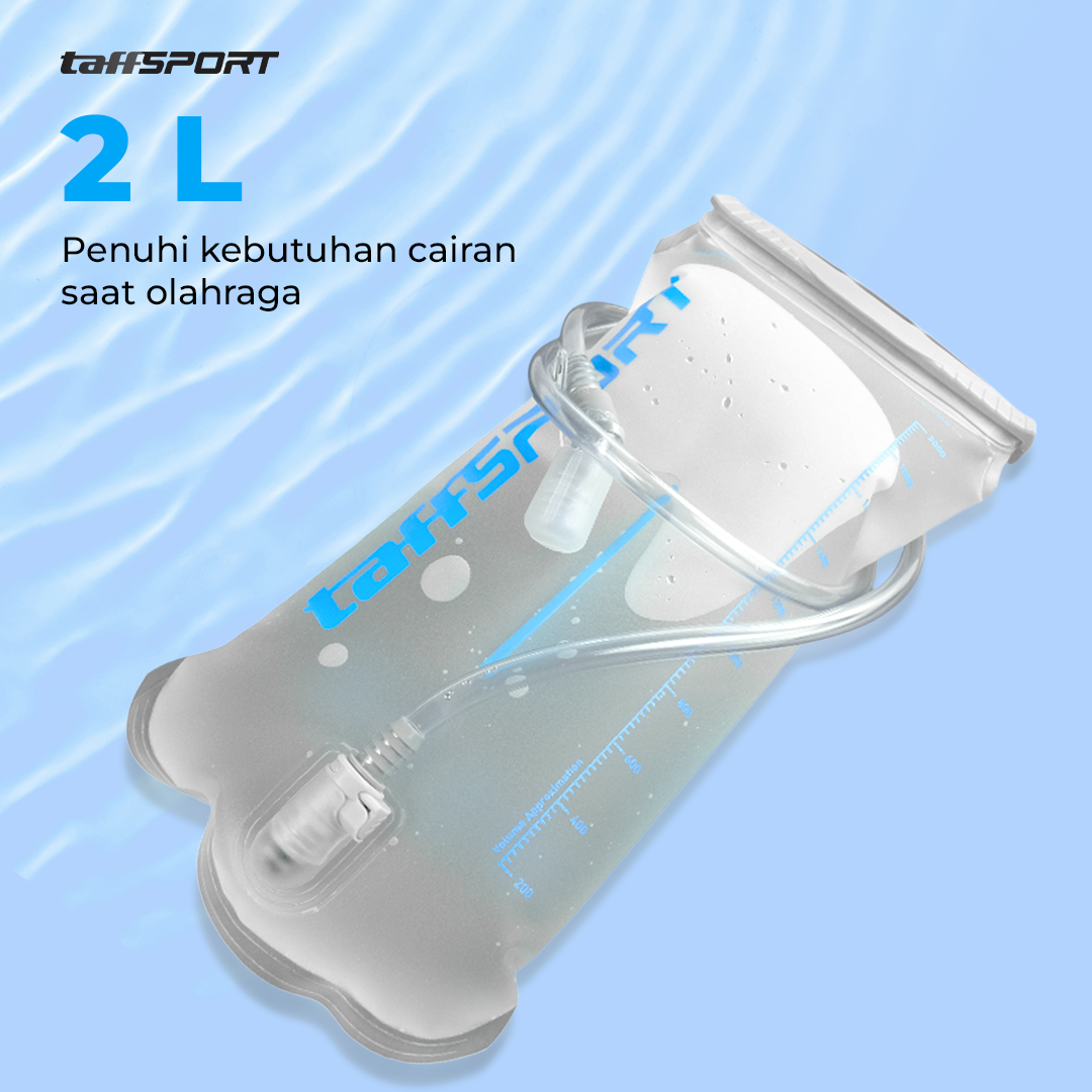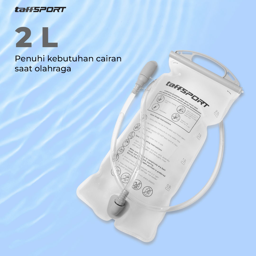 Penuhi kebutuhan air selama olahraga menggunakan water bladder dari TaffSPORT. Menawarkan kapasitas 2 L, water bladder memastikan kebutuhan cairan Anda terpenuhi. Selang panjang memudahkan Anda minum tanpa membuka water bladder. Bahan PEVA food grade yang aman untuk menyimpan air minum.