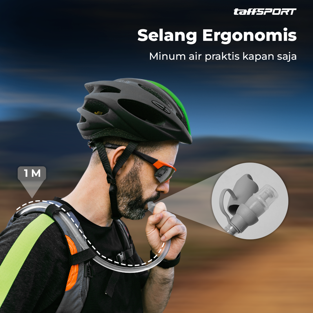 | Selang Ergonomis Water bladder ini dilengkapi selang ergonomis dengan panjang 1 M untuk memudahkan Anda minum air selama olahraga. Kini Anda bisa meredakan haus dengan mudah kapan saja. |