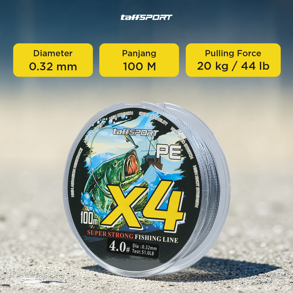 Anyaman 4 serat PE memberikan daya tarik tinggi dengan struktur yang lebih tipis namun tetap kuat. Senar ini mampu menghadapi tarikan keras ikan serta memberikan daya tahan lebih lama dibandingkan senar monofilamen biasa.
