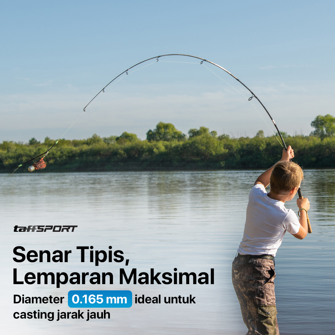 | Diameter Tipis, Lemparan Lebih Jauh Meski kuat, senar tetap memiliki diameter relatif tipis sehingga hambatan udara dan air lebih rendah. Hasilnya lemparan menjadi lebih jauh dan lebih presisi. Cocok untuk area spot ikan yang jauh dari bibir pantai atau tepi sungai. |