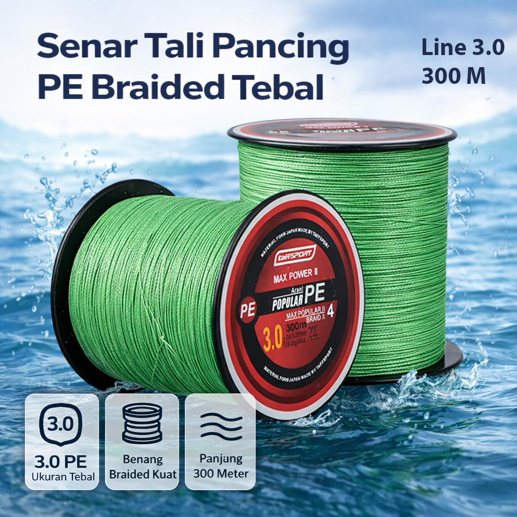 Gambar produk TaffSPORT Senar Pancing PE 4 Braided Strand Fishing Line 300M 3.0 - BLTP