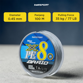 Tingkatkan performa memancing Anda dengan senar tali pancing TaffSPORT. 8 Lilitan serat PE yang rapat hasilkan kombinasi kekuatan, fleksibilitas, dan sensitivitas yang sempurna. Panjang 100 M cocok untuk berbagai teknik memancing baik di sungai, danau, maupun laut. Tersedia dalam varian ukuran 0.8 hingga 8.0 yang dapat disesuaikan dengan ukuran target ikan. Hadir dalam pilihan warna grey, green, dan mix color, senar pancing ini tak hanya tangguh, tapi juga memberi sentuhan stylish pada gulungan pancing Anda.
