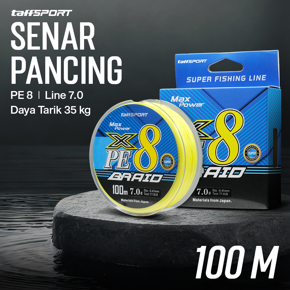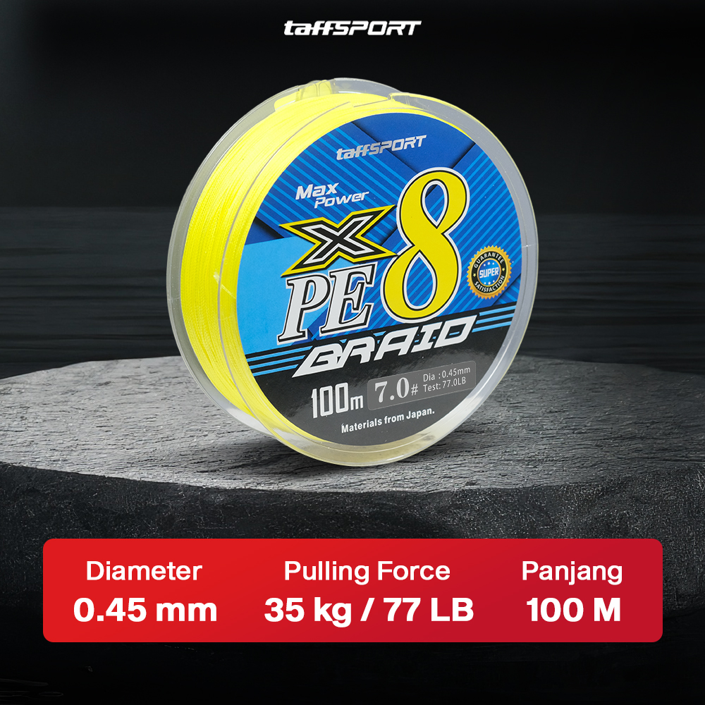 TaffSPORT Senar Pancing PE 8 Braided Strand Fishing Line 100M 7.0 - X8 - Yellow