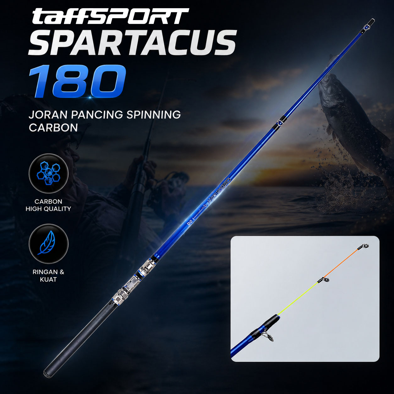 Sedang mencari joran pancing yang ringan, kuat, dan mudah dibawa ke mana saja? TaffSPORT Spartacus hadir sebagai joran spinning berbahan carbon fiber dengan desain 2 bagian yang praktis dan kokoh. Cocok digunakan di sungai, danau, kolam, maupun laut untuk berbagai target ikan. Joran carbon fiber ini ideal bagi pemancing yang ingin performa maksimal dengan mobilitas tinggi.
