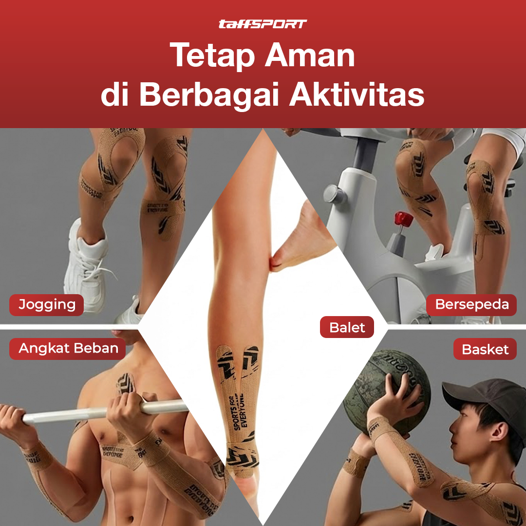 | Grip Kuat Setiap Saat Dilengkapi lapisan perekat kuat, Anda dapat langsung menggunakan kinesio tape untuk menjaga posisi tubuh tetap stabil selama beraktivitas. Grip kuat memastikan bagian tubuh yang dipasang tetap stabil. |
