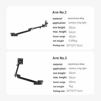 | Material Daya Tahan Tinggi Dibuat dari material aluminium alloy berkualitas tinggi, bracket ini memiliki daya dukung maksimal 20 kg yang kuat dan stabil. Mampu menopang kamera DSLR/mirrorless, ring light atau LED panel, mikrofon condenser, serta monitor dengan aman tanpa goyah, bahkan saat posisi lengan diperpanjang. |