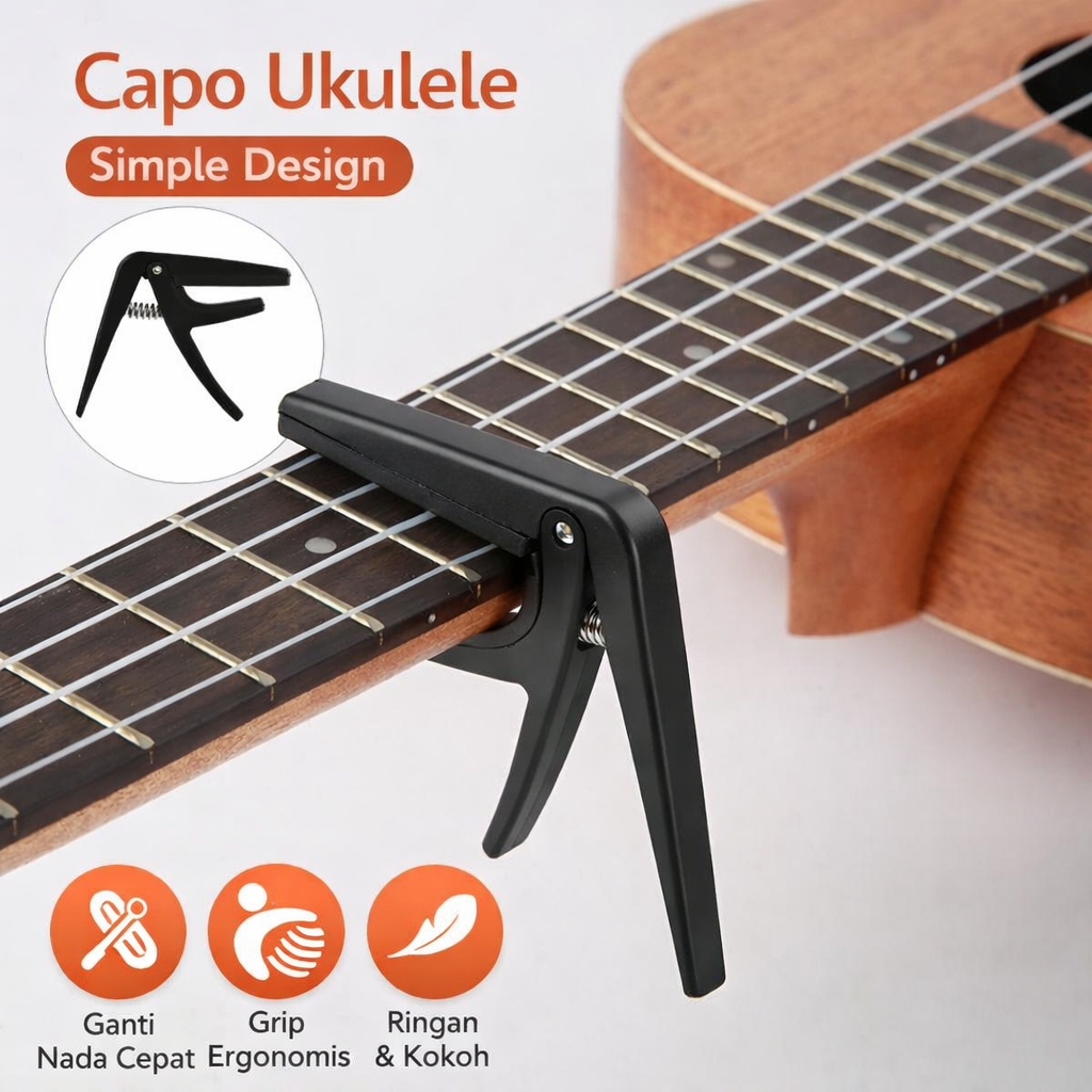 | Ada Karet Pelindung Ukulele Khawatir fretboard Anda lecet karena menggunakan capo ukulele? Tidak perlu khawatir karena capo ini dilapisi oleh karet pada bagian yang bersentuhan dengan fretboard. Anda pun bisa mendapatkan nada yang berbeda sembari menjaga tampilan ukulele. |