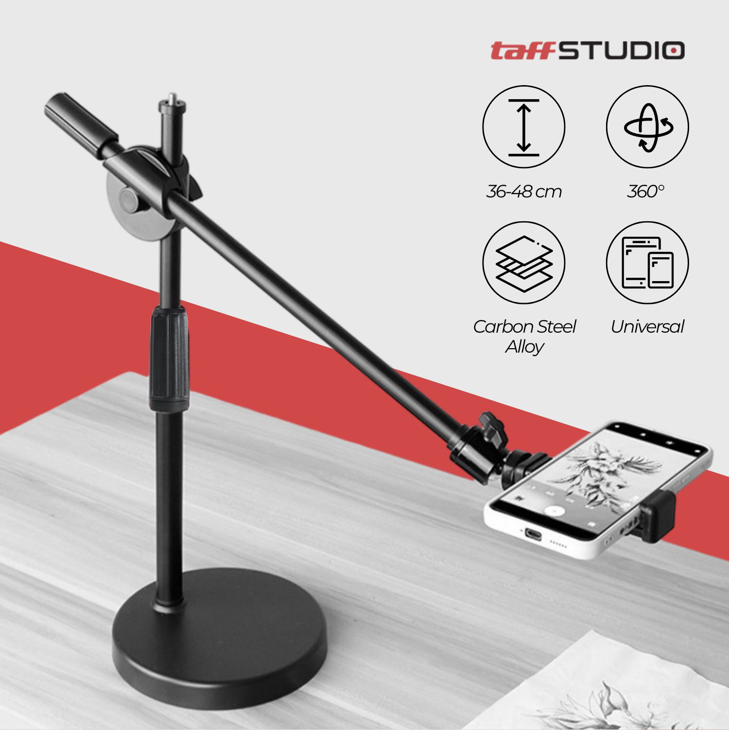 Dukung sesi fotografi dengan holder HP dari TaffSTUDIO. Headball dengan fitur rotasi 360° memungkinkan Anda mengambil aneka foto dan video dari berbagai angle terbaik. Anda juga dapat menggunakan mount 1/4 Inch universal pada bagian atas untuk memasang ring light atau lightning lainnya agar hasil foto semakin natural. Cocok untuk Anda yang ingin membuat konten menarik tanpa harus keluar ruangan.