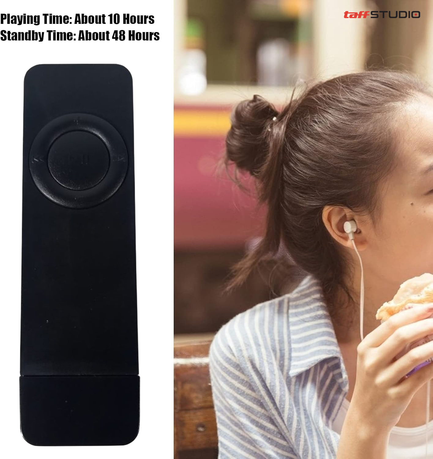 Jika musik adalah bagian dari kehidupan Anda, MP3 player dari TaffSTUDIO bisa menjadi pilihan tepat. MP3 player ini memberikan pengalaman mendengarkan musik yang praktis tanpa menguras baterai smartphone. Hadir dengan desain minimalis dan ramping, perangkat ini mudah dibawa ke mana saja dan pas disimpan di saku celana. Mendukung berbagai format musik dengan daya tahan baterai yang lama, cocok untuk menemani aktivitas harian Anda.