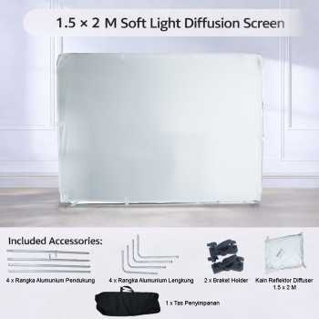 | Dua Pilihan Layar Besar Reflector diffuser soft light screen hadir dengan 2 varian berukuran 1.5 x 2 M dan 2 x 2 M, mampu menjangkau area pencahayaan yang luas, sehingga sangat ideal untuk pemotretan full body, grup shot, dan setup lighting skala besar. Cahaya yang dihasilkan menjadi lebih halus dan merata tanpa bayangan. Hasil foto dan video terlihat lebih profesional dan natural. |