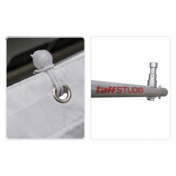 | Pemasangan Mudah Proses pemasangan dan pembongkaran rangka lebih cepat dan praktis. Tidak memerlukan alat rumit untuk instalasi. Struktur rangka dapat dibongkar menjadi beberapa bagian, sehingga membuat penyimpanan lebih ringkas dan mudah dibawa, baik untuk kebutuhan studio atau produksi lapangan. |