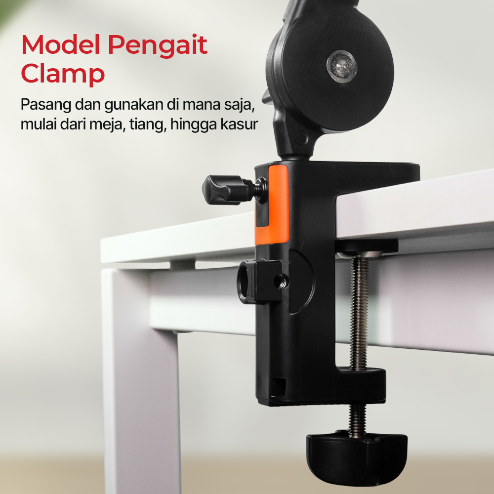 | Mudah Dipasang dan Dilepas Dilengkapi dengan sistem pemasangan yang mudah, sehingga Anda bisa dengan cepat memasang atau melepas mikrofon tanpa perlu alat tambahan. Clamp penjepit yang kuat memastikan stand tetap stabil di meja atau permukaan yang datar, sehingga tidak mudah tergeser saat digunakan. Proses pemasangan yang praktis membuat stand ini ideal bagi Anda yang sering berpindah tempat saat rekaman. |