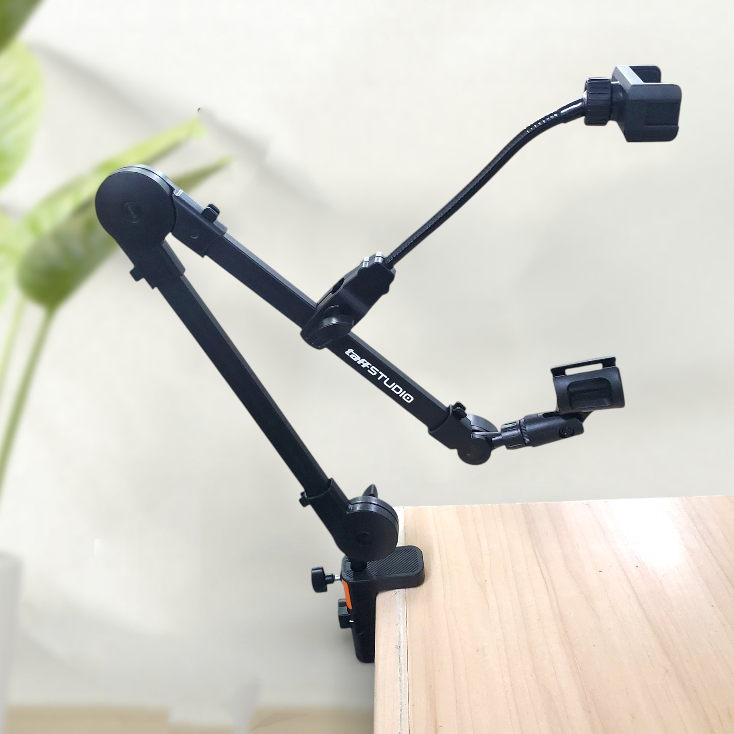 | Stand Mikrofon yang Fleksibel dan Ergonomis TaffSTUDIO menghadirkan kenyamanan dengan boom arm yang fleksibel. Boom arm ini dapat disesuaikan tingginya, sehingga Anda dapat menempatkan mikrofon pada posisi yang tepat tanpa harus memegangnya. Dengan kebebasan tangan, Anda dapat lebih leluasa mengatur alat lain atau membaca catatan saat bernyanyi, podcasting, atau melakukan sesi rekaman lainnya. |