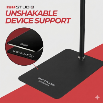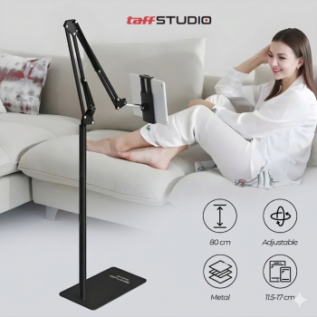Menggunakan smartphone saat bersantai kini semakin praktis dengan menggunakan stand tablet dari TaffSTUDIO. Dibekali tiang dan lengan yang panjang, kini Anda bisa mengatur posisi dan kemiringan smartphone agar nyaman digunakan tanpa harus memegangnya secara manual. Alas yang lebar dan stabil membuat stand ini dapat digunakan untuk menemani aktivitas Anda di mana saja!