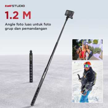Mengabadikan aneka momen berkesan kini semakin mudah dengan tongsis atau selfie stick dari TaffSTUDIO. Dibuat khusus untuk action cam, tongsis ini memiliki model invisibel yang tidak mengganggu hasil foto atau rekaman. Ukuran 1.2 M super panjang cocok untuk menangkap detail pemandangan di luar ruangan. Terbuat dari aluminium alloy yang kokoh dan ringan sehingga tidak akan membuat tangan pegal.