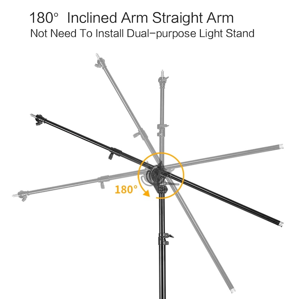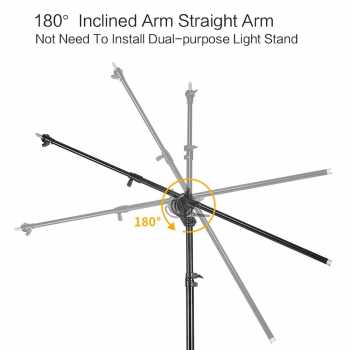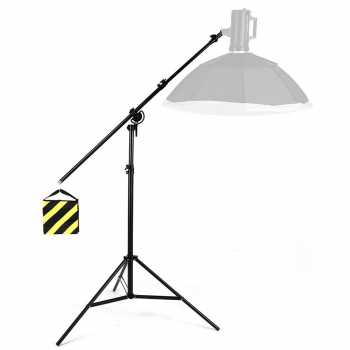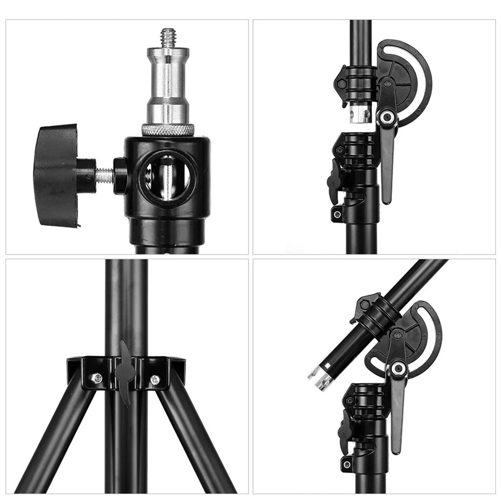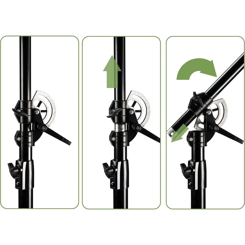 | Boom Arm Teleskopik Tripod ini dilengkapi crossbas atau boom arm teleskopik yang memiliki kontruksi pipa besi tebal untuk menjaga kestabilan saat digunakan vertikal maupun horizontal. Fitur ini memungkinkan pemasangan lampu dari arah atas (overhead lighting) tanpa perlu crane tambahan. Sangat membantu untuk kebutuhan flat lay photography, top shot video, maupun setup kreatif. |