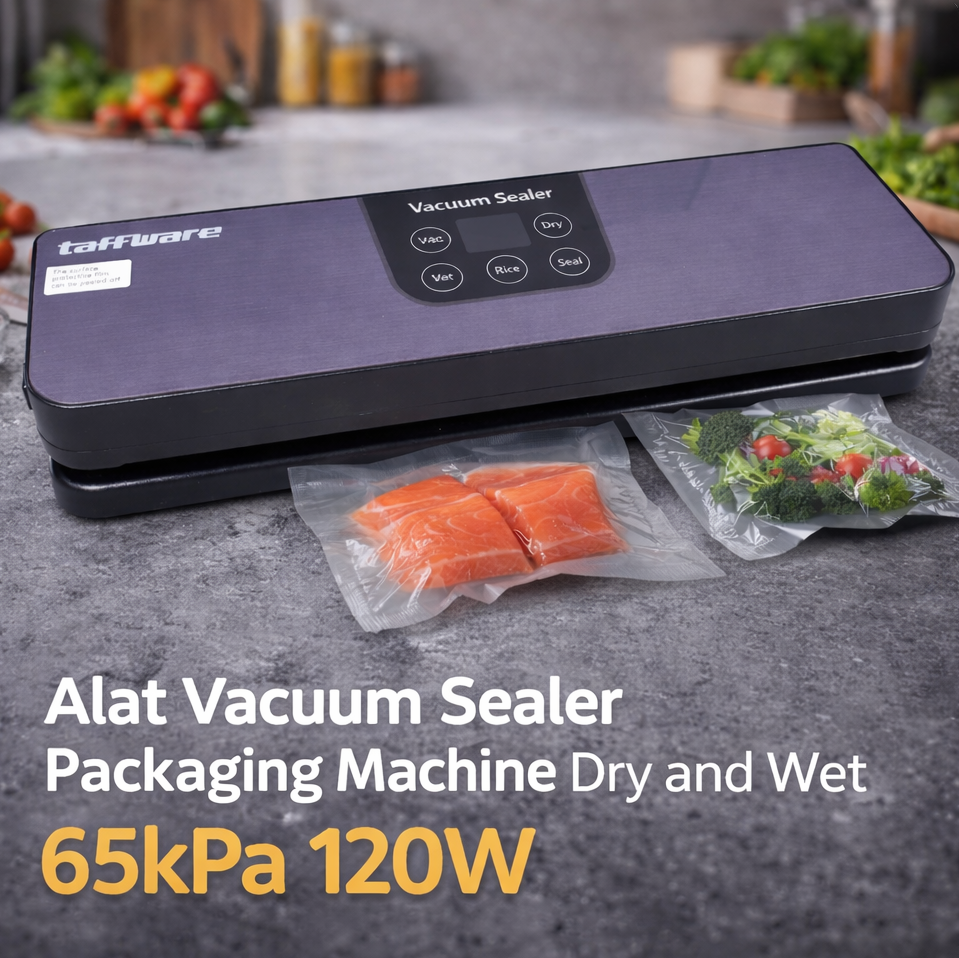 Vacuum sealer ini dirancang untuk menyegel berbagai jenis makanan, baik basah maupun kering, seperti daging, sayuran, biji-bijian, hingga makanan berkuah tanpa perlu dipisah. Dilengkapi kekuatan hisap hingga 65 kPa, alat ini mampu mengeluarkan udara secara maksimal untuk menjaga kesegaran dan memperpanjang masa simpan makanan. Dengan panjang sealer 26 cm, Anda dapat menggunakan plastik berbagai ukuran sesuai kebutuhan. Konsumsi daya hanya 120 W, menjadikannya efisien, cepat, dan praktis digunakan di dapur sehari-hari.