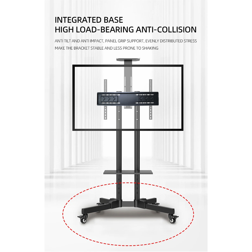 | Atur Posisi Paling Nyaman Dengan ketinggian yang dapat disesuaikan dari 1.3 hingga 1.5 M, bracket TV ini memudahkan Anda menyesuaikan posisi TV sesuai kebutuhan baik untuk presentasi di ruangan besar, menonton film di ruang keluarga, hingga penggunaan profesional di ruang meeting. Fleksibilitas ini memberikan kenyamanan visual terbaik di berbagai situasi. |